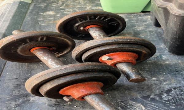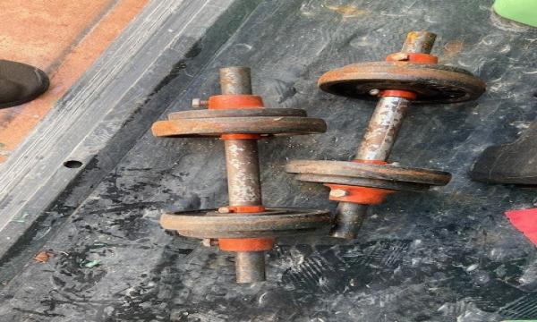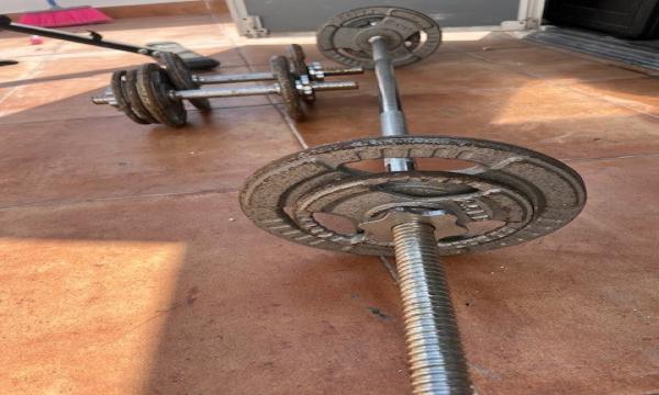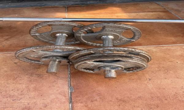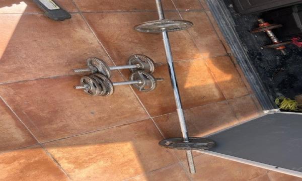 2 MANCUERNAS DE 20 KILOS MARCA APOLO 1 BARRA CROMADA CON SUS SEGUROS Y PESOS PARA VARIAR PESOS DISCOS DE PARA BARRA Y MANCUERNA 1 BANCO DE EJERCICIOS CON DIFERENTES POSICIONES